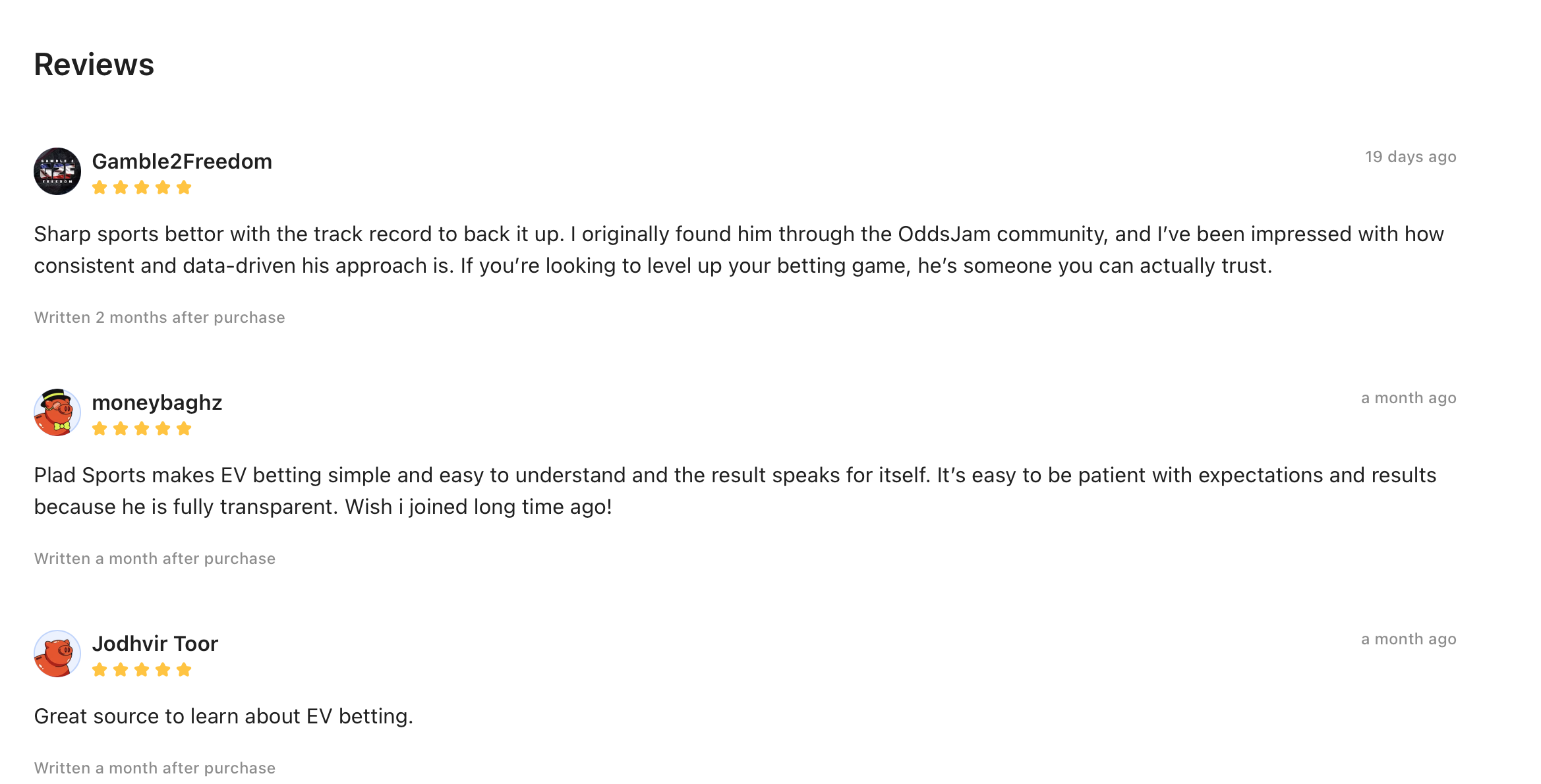 - Reviews for profiles: example: